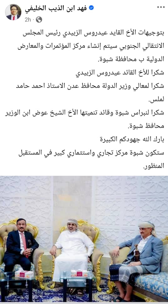 تشهد شبوة الشموخ إطلاق مشروع إنشاء مركز المؤتمرات والمعارض، هذا المشروع النوعي الذي باركه الجميع ولا يقتصر أثره على كونه منصة مؤهلة لاحتضان الفعاليات والمناسبات الدولية والإقليمية، بل يجسد في مضمونه ومعانيه الرؤية الطموحة لقيادة المحافظة، وإيمانها العميق بأهمية الاستثمار في البنية المؤسسية والتنموية.