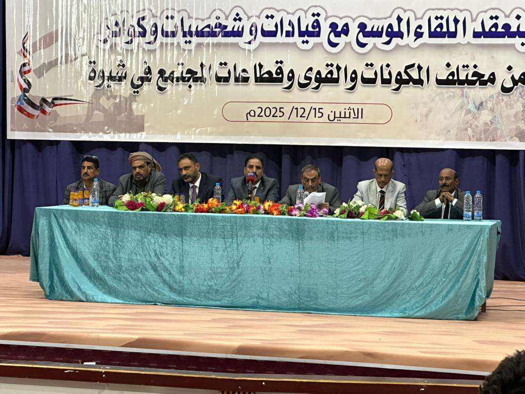 شبوة.. في إطار تعزيز التواصل.. فريق التوجيه والرقابة الرئاسي يعقد لقاء موسع مع مختلف المكونات والقوى وقطاعات المجتمع