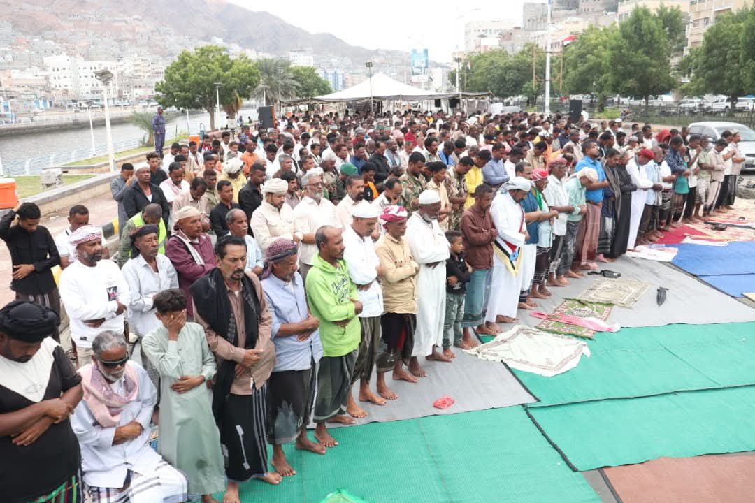 بحضور قيادات.. أبناء المكلا يؤدون صلاة الجمعة في ساحة الاعتصام