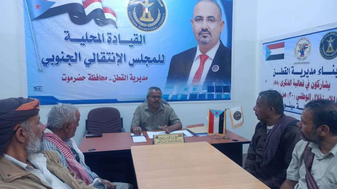 التقى رئيس الهيئة التنفيذية للقيادة المحلية للمجلس الانتقالي الجنوبي في مديرية القطن بمحافظة حضرموت، محمد الحداد، أمس السبت، بأعضاء اللجان المحلية للمجلس في مراكز المديرية، لمناقشة الترتيبات الخاصة بتشكيل لجان مجتمعية في الأحياء السكنية بالمديرية.