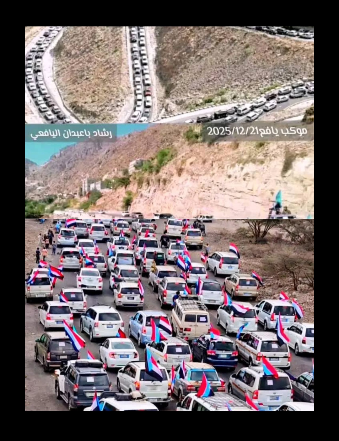 في مشهد يليق بتاريخها ومكانتها، شهدت الطرق المؤدية إلى العاصمة عدن صباح اليوم، الأحد الموافق 21 ديسمبر 2025 موكبًا جنوبيًا مهيبًا لأبناء يافع زحفاً سلمياً منظماً باتجاه مخيم الاعتصام في ساحة العروض بخور مكسر في موقفٍ وطني يعبّر عن الالتزام التاريخي والثبات السياسي في سبيل استعادة الدولة الجنوبية.