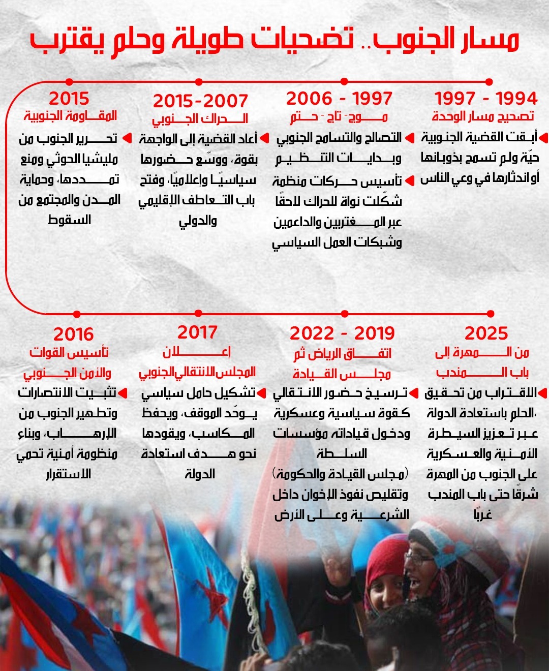 كيف تحوّل الحلم الجنوبي إلى واقع؟ خط زمني من 1994 إلى اليوم