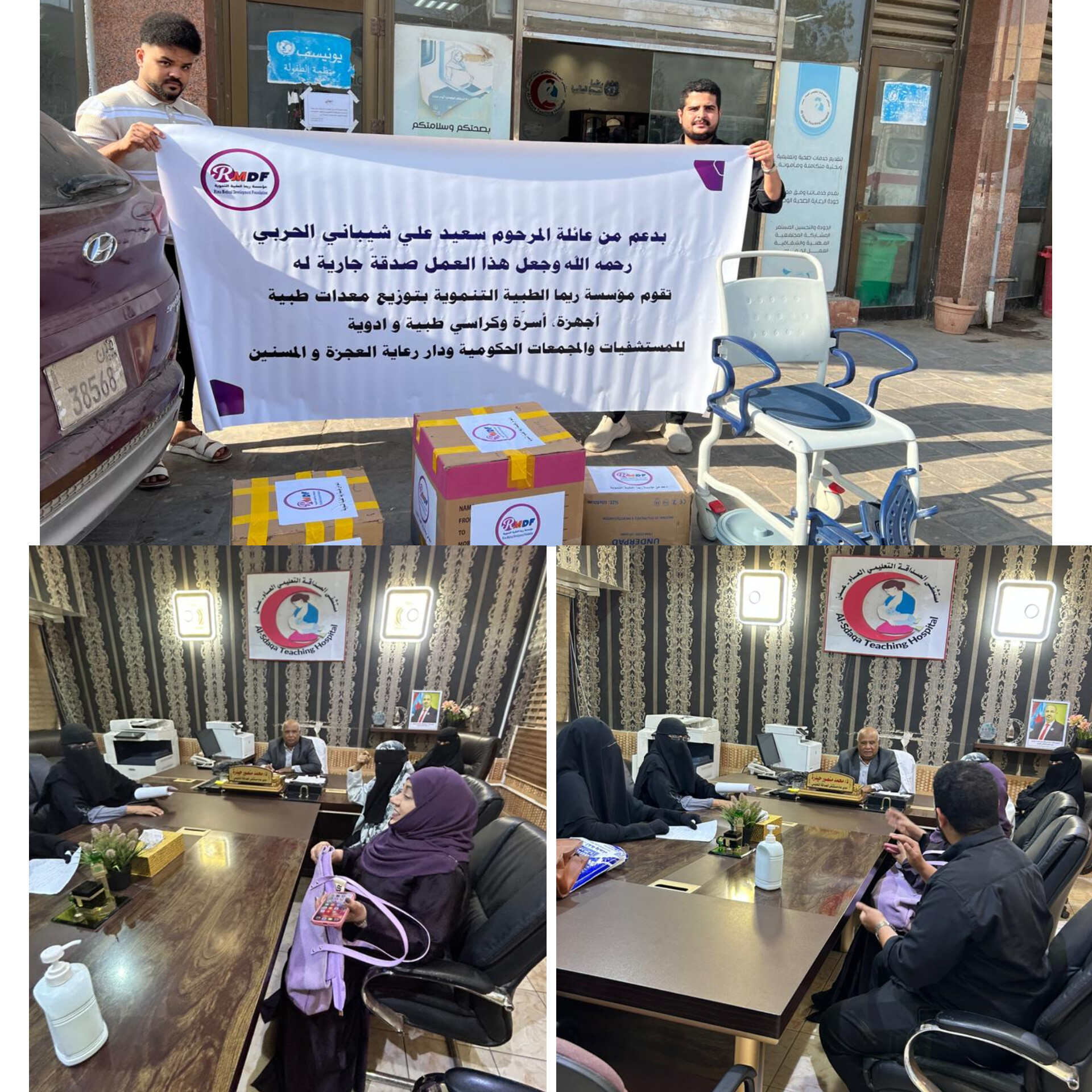 نفذت مؤسسة ريما الطبية التنموية برئاسة د. ريما همشري اليوم الاثنين مبادرة إنسانية نوعية تمثلت بتزويد مستشفى الصداقة التعليمي بالعاصمة عدن بحزمة من المستلزمات الطبية والصحية بدعم كريم من عائلة المرحوم سعيد علي شيباني رحمه الله في إطار صدقة جارية عن روحه الطاهرة.