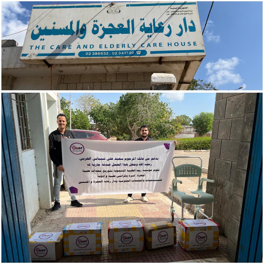 نفّذت مؤسسة ريما الطبية التنموية، اليوم الخميس، مبادرة إنسانية تمثلت بتوزيع عدد من المستلزمات الطبية والصحية لنزلاء دار رعاية العجزة والمسنين بالعاصمة عدن بدعم كريم من عائلة المرحوم سعيد علي شيباني –رحمه الله– وتنفيذًا لصدقة جارية على روحه الطاهرة.