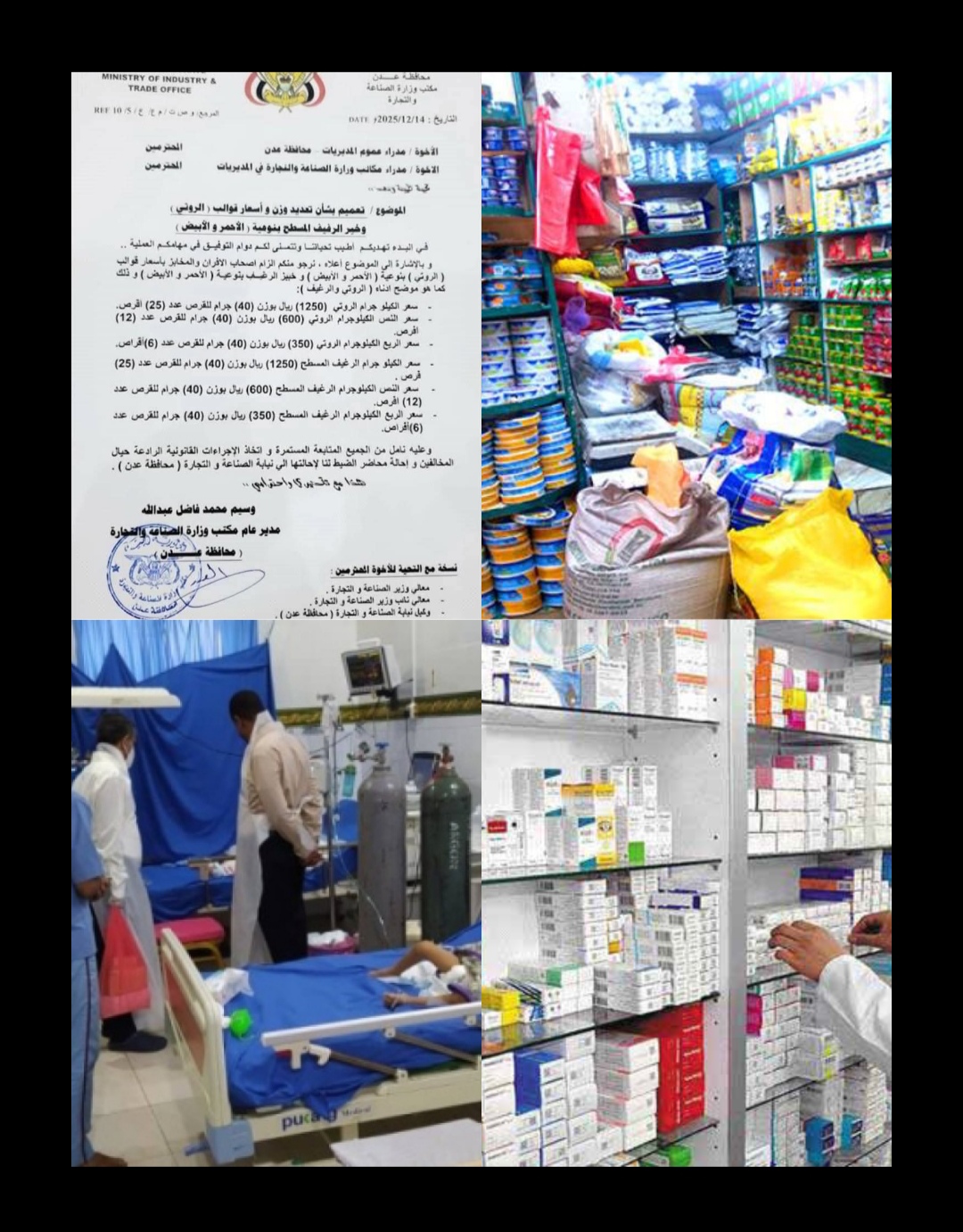 وفي ذات الإتجاه تعميم مكتب الصناعة والتجارة بالعاصمة عدن الذي قضى بتحديد سعر ووزن مادة الروتي في كافة الأفران والمخابز ودخوله حيز التنفيذ يعد خطوة حاسمة تهدف إلى كبح جماح التلاعب بقوت المواطنين.