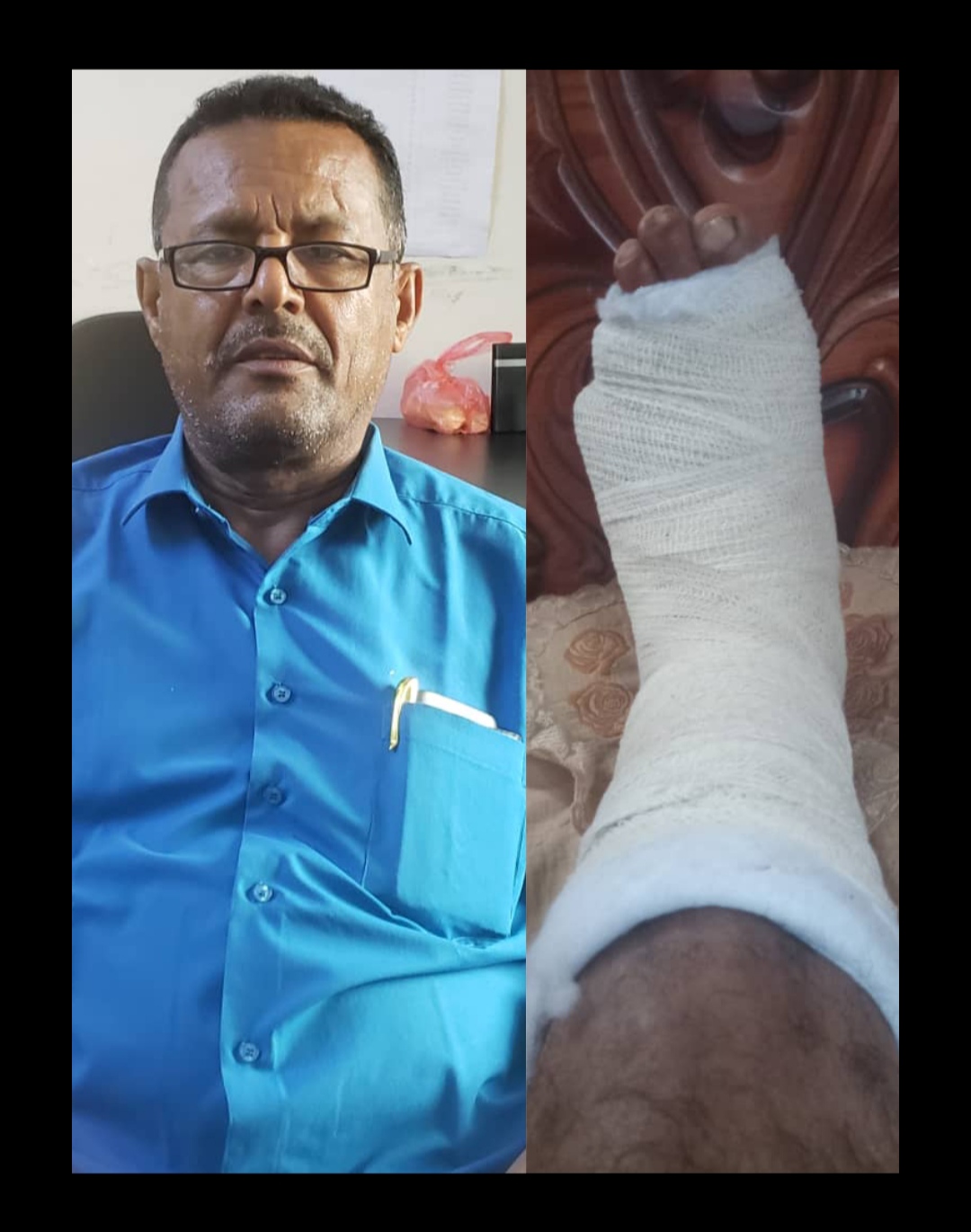 اثناء مشاركته في مليونية ردفان..المناضل الجنوبي(غاندي) يتعرض لحادث جعله طريح الفراش