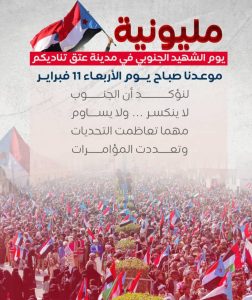 الخروج والمشاركة في الحشد الجماهيري، صباح يوم غدا الأربعاء 11 فبراير في مدينة عتق واجب وطني ومن يتخلف اليوم يترك القرار لغيره