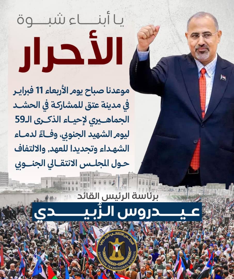 مساء الحرية والكرامة، مساء الفخر والعز، يا شعبنا الجنوبي العظيم في الداخل والخارج.