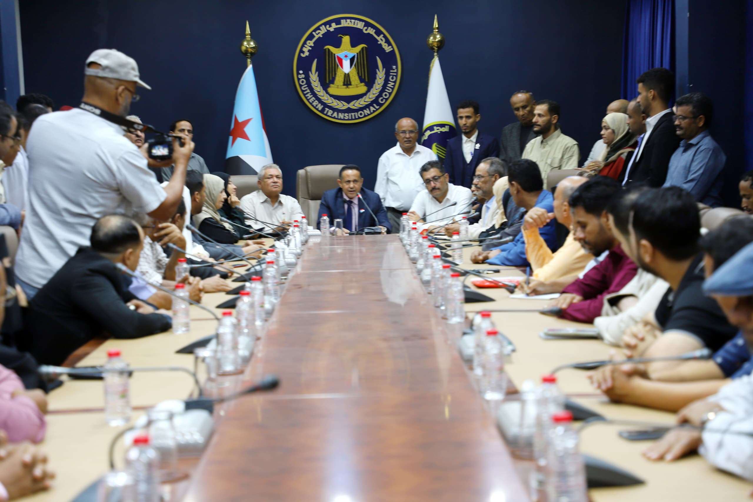 عقد القائم بأعمال الأمين العام للأمانة العامة لهيئة رئاسة المجلس الانتقالي الجنوبي، الأستاذ وضاح الحالمي، اليوم الأحد، لقاءً موسعًا بكادر هيئات الأمانة العامة، لمناقشة آخر المستجدات على الساحة الوطنية الجنوبية وسبل تعزيز الأداء التنظيمي والإداري خلال المرحلة الراهنة.