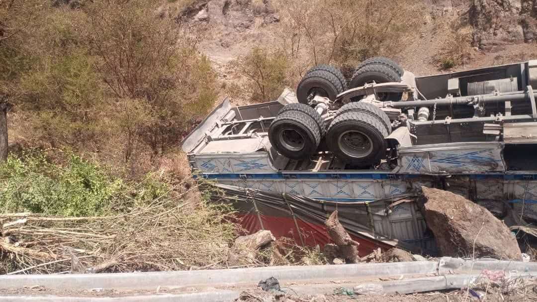 إب: حادث مروري يُسفر عن انقلاب شاحنة في نقيل السياني