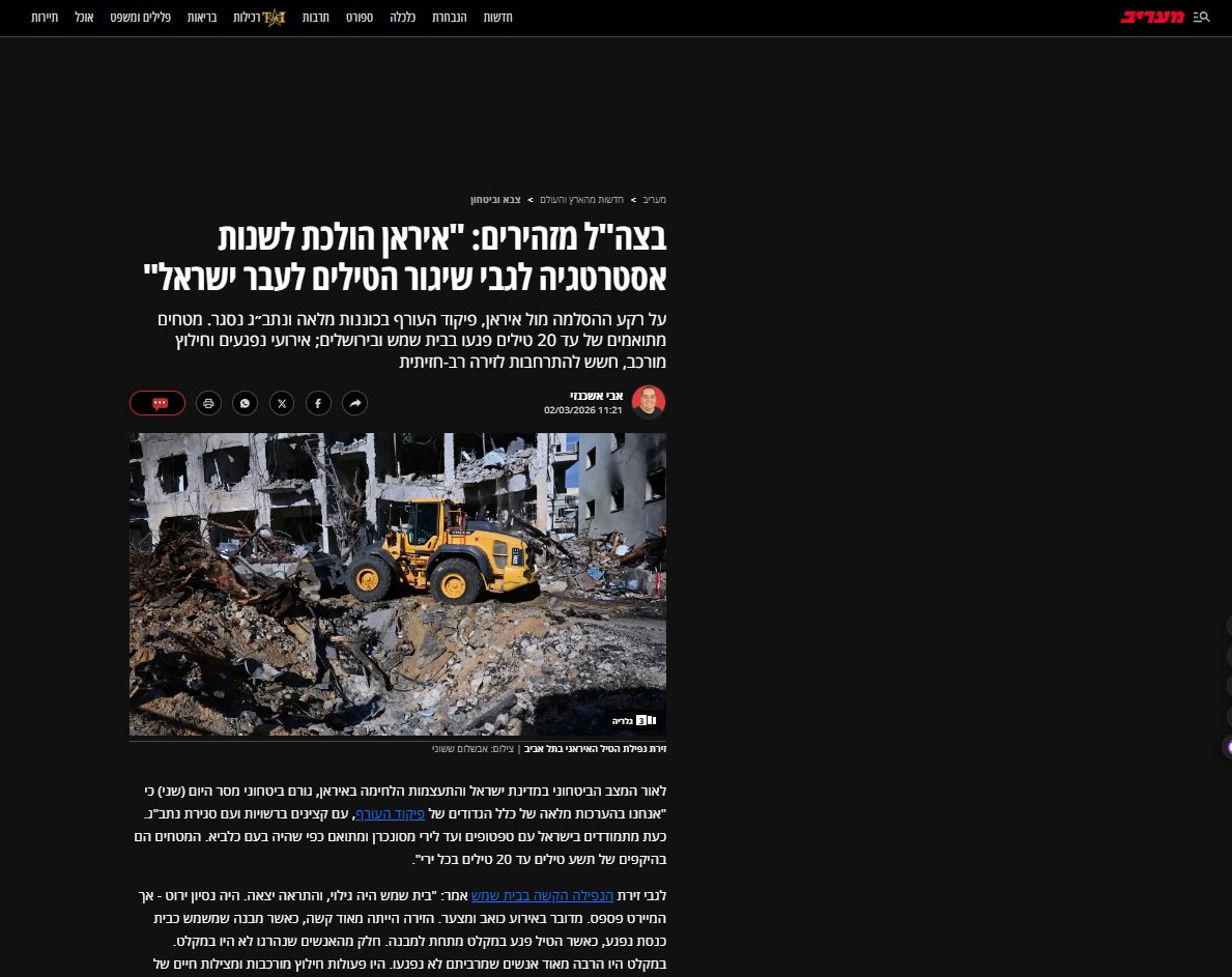 وبحسب تقرير نشرته صحيفة معاريف، أعلنت قيادة الجبهة الداخلية في إسرائيل حالة التأهب القصوى، فيما تم إغلاق مطار بن غوريون مؤقتاً، مع استمرار إطلاق الصواريخ من إيران.