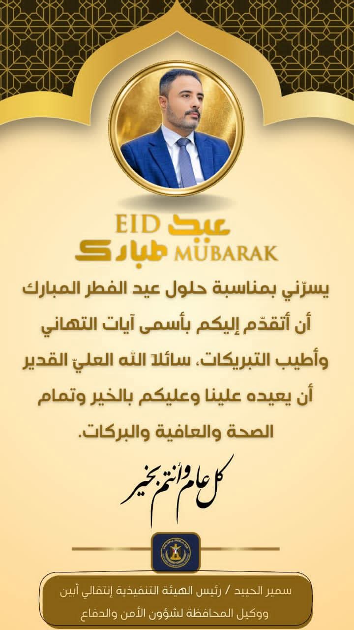 كما عبّرت عن أملها بأن يحمل هذا العيد الخير واليُمن والبركات، وأن يعيده الله على الجميع بالسلام والأمن والاستقرار، وأن تتكلل الجهود الوطنية بالنجاح في تحقيق تطلعات أبناء الجنوب في الحرية والكرامة.