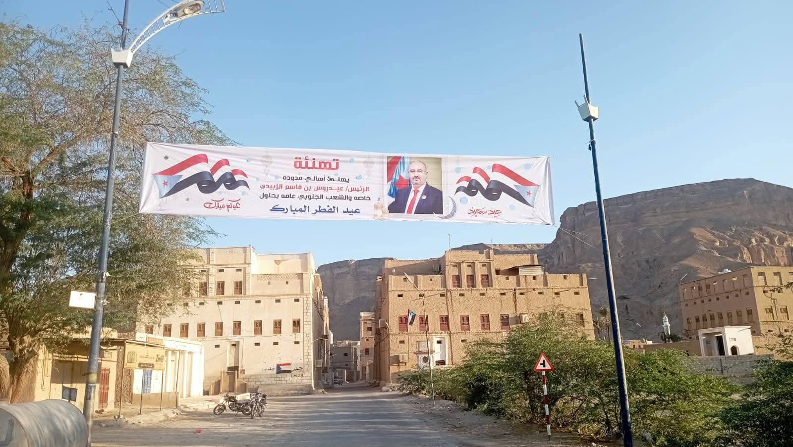 تزامناً بحلول عيد الفطر..سيئون تتزين بصور الرئيس الزُبيدي