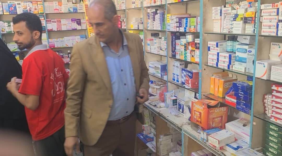 وتم نزول فريق الرقابه والتفتتيش برئاسة مدير ادارة الصيدله والتموين الطبي بمكتب الصحه عدن الدكتور مروان الشرجبي