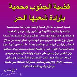 #أ/ صالح شائف: قضية الجنوب محمية بإرادة شعبها الحر