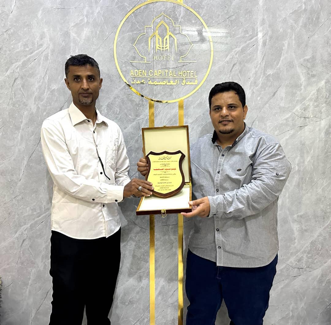 وقدم مدير الشباب درع التميز للشخصية الرياضية الداعمة رجل الأعمال مارس عبدالله مثنى، إلى جانب موقع صوت العاصمة الاخباري تسلمه رئيس تحرير الموقع الزميل عادل حمران.