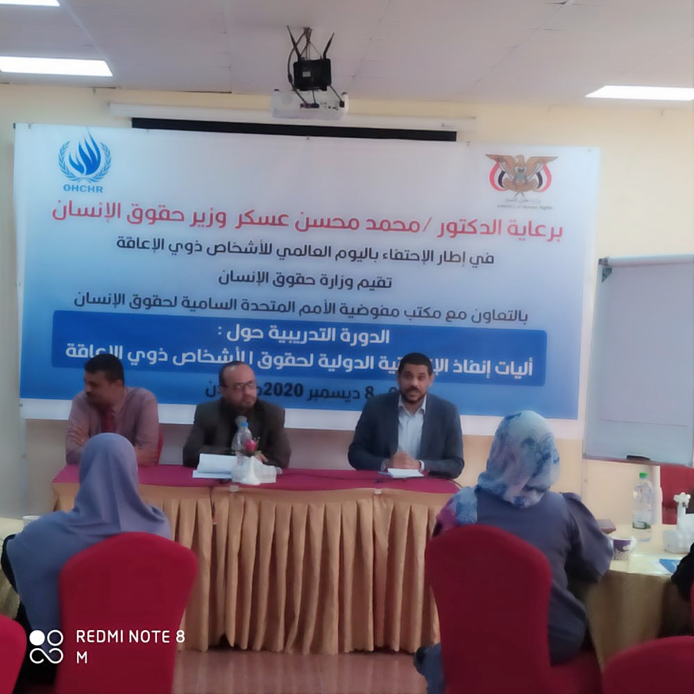 أقيمَ صباح يومنا هذا الأحد الموافق ٦ /١٢ / ٢٠٢٠م الدورة تدريبية حول آليات إنقاذ الإتفاقية الدولية لحقوق الأشخاص ذوي الإعاقة(أصحاب الهمم)،من خلال تعريف الآليات الدولية والوطنية لحماية حقوق الأشخاص ذوي الإعاقة برعاية وزير حقوق الإنسان الدكتور محمد محسن عسكروبالتعاون مع مفوضية الامم المتحدة