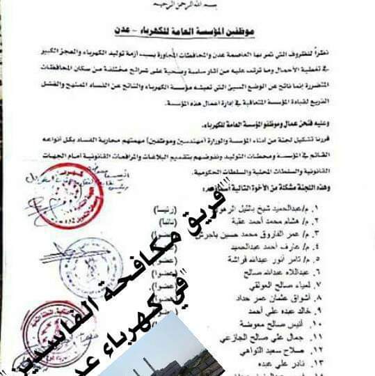 قيادي نقابي بكهرباء عدن يطلب تفويضا للنقابة من الموظفيين بطرد مدير مكتب الوزير المتهم بقضايا فساد