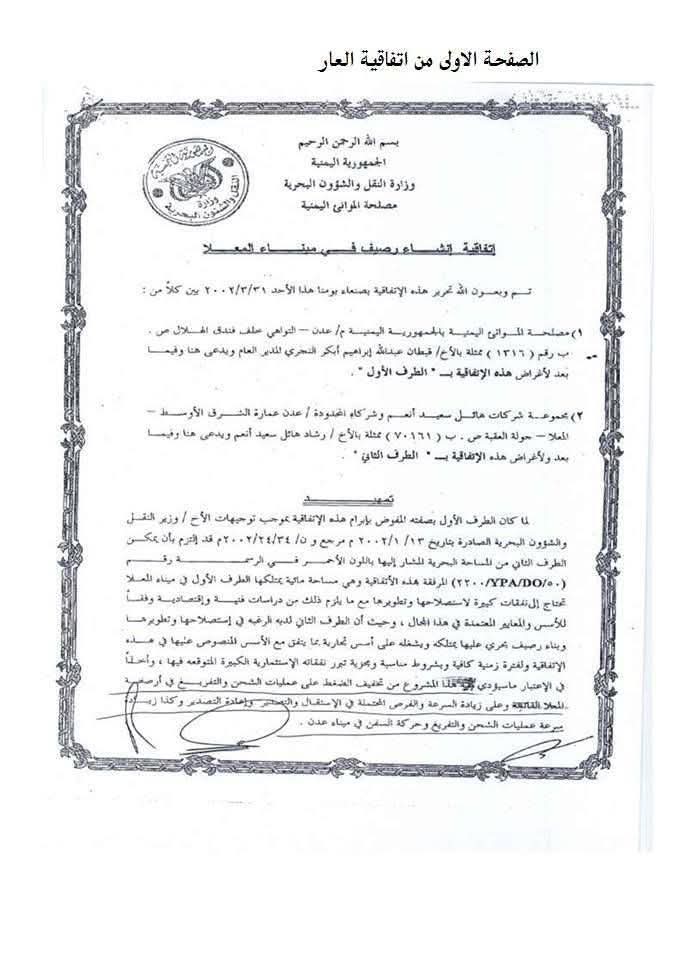 كشفت وثائق رسمية أن مجموعة هائل سعيد أنعم تدفع ( 12 ألف دولار سنوياً ) إيجار موقع ميناء المعلا بكامل تجهيزاته الحيوية من️ الأرصفة والصوامع والمستودعات والمساحات المحيطة به بمعدل 1000 دولار فقط شهرياً لموقع بحري استراتيجي يُعد من أهم شرايين الاقتصاد الوطني بما يشكل فضيحة علنية أن يكون إيجار الميناء أقل من إيجار شقة متواضعة.