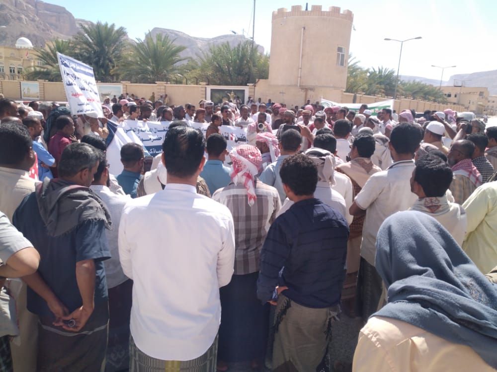 في صباح اليوم الخميس الموافق 18/2/2021 شهدت مدينة سيئون،صباح اليوم،وقفةً احتجاجيةً لعمال وموظفي المرافق والمؤسسات الحكومية بوادي وصحراء حضرموت