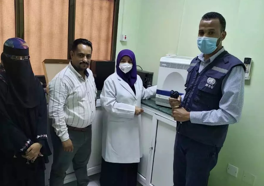 منظمة الصحة العالمية تسلم مستشفى الصداقة التعليمي بعدن جهاز ال(pcr).