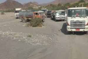 منع سكان منطقة خورة في مديرية مرخة السفلى، بمحافظة شبوة، اليوم الجمعة، تهريب قاطرات المحروقات على طرق المنطقة.
