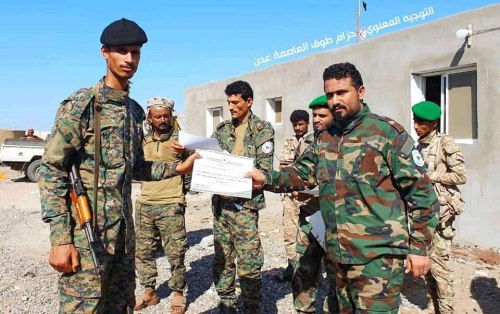قائد حزام طوق عدن يكرم أفراد نقطة العلم