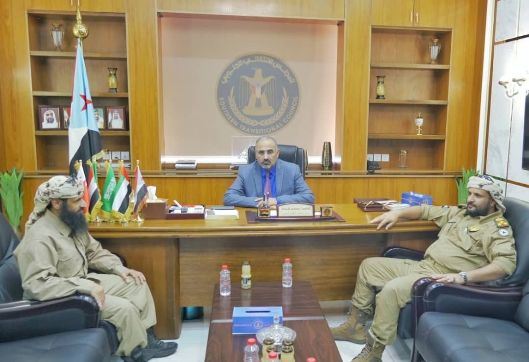 الرئيس القائد عيدروس الزُبيدي يلتقي القائد العام لألوية الدعم الإسناد