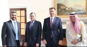 وبحسب بيان للخارجية البريطانية، سيحضر هذا الاجتماع وزير الدولة للشؤون الخارجية السعودي عادل الجبير، ووزير الشؤون الخارجية الإماراتي الشيخ عبد الله بن زايد وديفيد شاترفيلد ممثلا عن الولايات المتحدة.