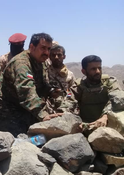 رئيس القيادة المحلية لانتقالي لحج برفقة القائد أبو اليمامة وقائد الحزام الأمني لحج يتفقدون خط النار على حدود جبهة حبيل حنش