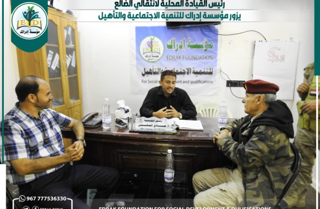 رئيس القيادة المحلية لانتقالي الضالع يزور مؤسسة إدراك للتنمية الاجتماعية والتأهيل.
