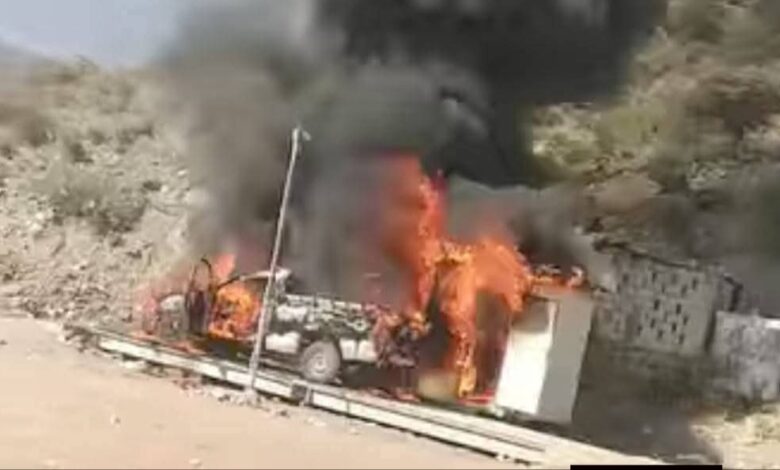 تاجر جنوبي يحرق سيارته المحمّلة بالقات احتجاجًا على جبايات الحوثيين في دمت اليمنية