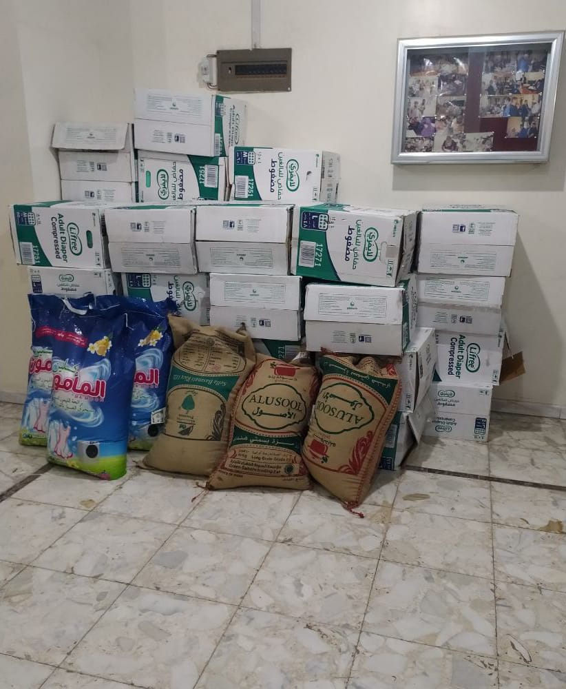وقدمت مؤسسة نبض الحياة الخيرية وبالشراكة مع فاعلي الخير حفاضات وارز وصابون .