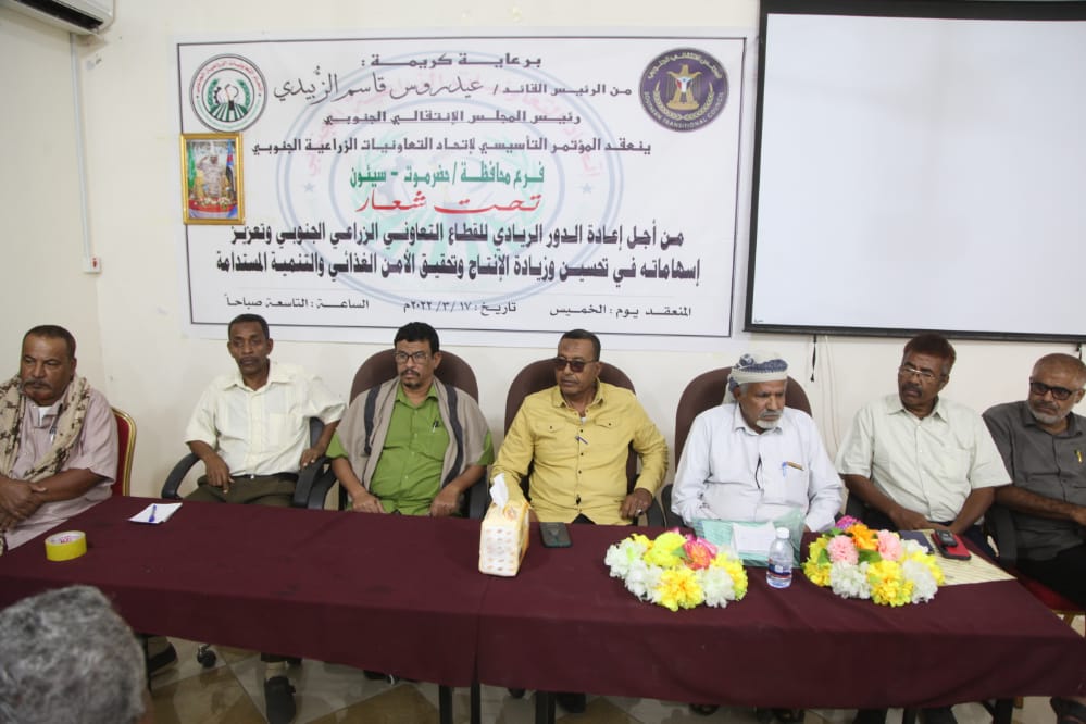 *احتضنت مدينة سيئون محافظة حضرموت يومنا هذا الخميس الموافق 2022/3/17م إشهار فرع اتحاد التعاونيات الزراعية الجنوبي. بحضور المهندس/صالح مساعد الأمير رئيس اتحاد التعاونيات الزراعية الجنوبي والأخ محمد عوض بامطرف ممثل الدائرة الجماهيرية الأمانة العامة للمجلس الانتقالي الجنوبي.