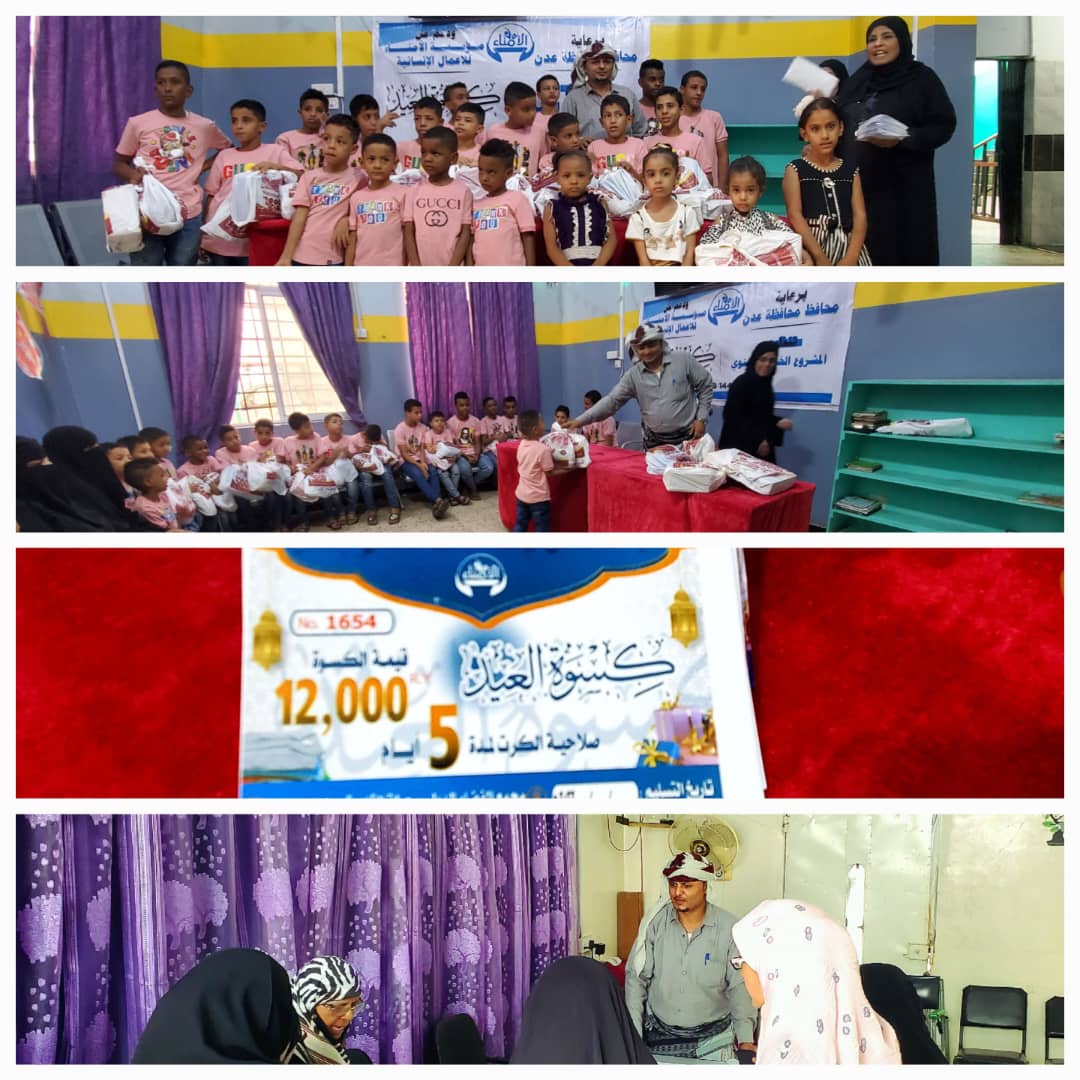 فيما استفادت 500 حالة من كسوة العيد وزعتها المؤسسة على دور الأيتام والمعاقين في العاصمة عدن، وكذلك الأسر والأيتام في أحياء العاصمة عدن، وزعت عبر شخصيات اجتماعية وعقال الحارات.
