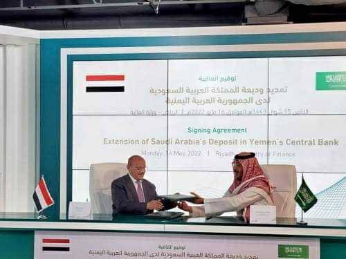 أكد مصدر مقرب من إدارة البنك المركزي بأن التوقيع على اتفاقية الوديعة السعودية الخاصة بدعم استقرار العملة المحلية والبالغة ملياري دولار ، وقعت صباح اليوم الاثنين الموافق 16مايو 2022م التوقيع على اتفاقية تمديد الوديعة السعودية السابقة وتحويل الدفعة الأخيرة منها والمقدرة 174 مليون دولار إلى حساب البنك المركزي بعدن
