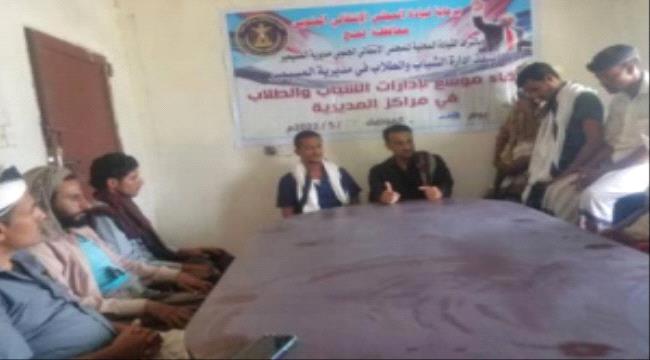 عقدت إدارة الشباب والطلاب بالهيئة التنفيذية للقيادة المحلية للمجلس الانتقالي الجنوبي في مديرية المسيمير بمحافظة لحج، امس الأحد، اجتماعًا موسعًا لأعضاء اللجان المحلية بمراكز المديرية، بحضور عبدالفتاح جمال سعيد رئيس تنفيذية انتقالي المسيمير.