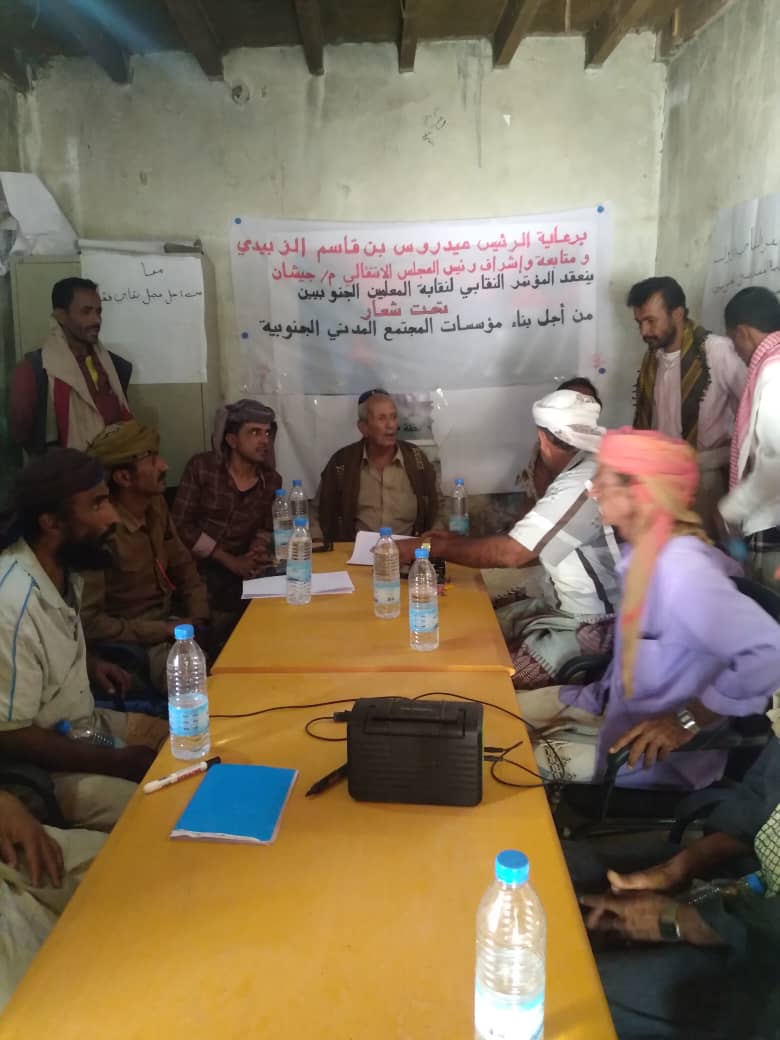 برعاية الرئيس القائد عيدروس بن قاسم الزبيدي وبدعم ومتابعة رئيس المجلس الانتقالي م جيشان ,عقد صباح يوم امس الثلاثاء الموافق 31مايو 2022م في مقر المجلس الانتقالي بمديرية جيشان محافظة أبين المؤتمر النقابي الأول لنقابة المعلمين الجنوبيين في مديرية جيشان / ابين وتحت شعار من أجل بناء مؤسسات المجتمع المدني الجنوبي.