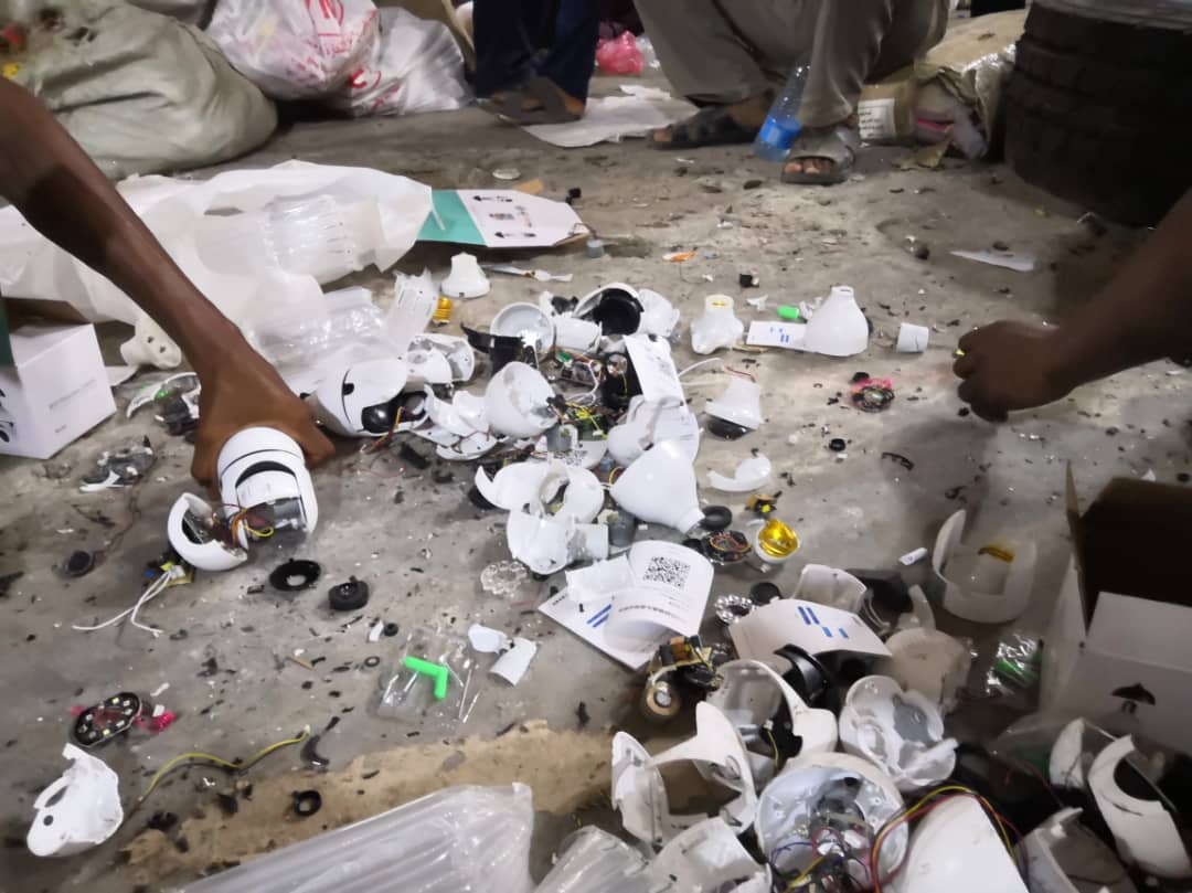قامت جمارك وشرطة العاصمة عدن صباح اليوم، باتلاف كاميرات تجسس محظور دخولها للبلاد من نوع لاسلكي (WF) بانورامية صوت وصورة على شكل لمبة صينية الصنع.