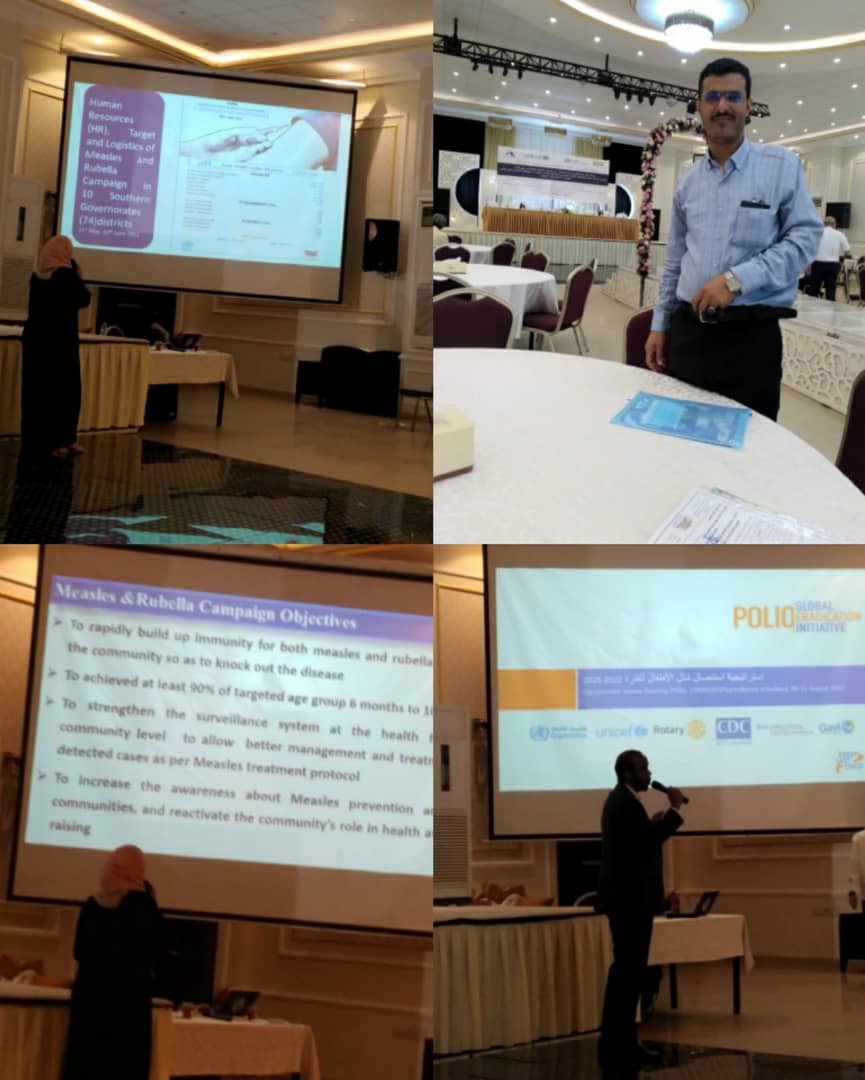 وشدد الدكتور عبدالرحمن المحرابي بمواصلة الجهود وخاصه من قبل روؤساء الفرق الصحية في المحافظة والمديريات وطرح الخطط المستقبلية ليستفيد منها القطاع الصحي وكذالك الكادر الطبي في أنحاء المحافظة واعرب الدكتور عبدالرحمن المحرابي عن شكرة وتقديره للمنظمات التي تشجع مثل هذه الأنشطة والفعاليات العلمية التي توحد جهود الصحة وتمهد لمستقبل أفضل للطاقم الطبي كما طمن الدكتور المحرابي على أن الجهود متواصلة وهناك الكثير من الأنشطة والفعاليات التي سوف تنقل المحافظة الى وضع المنافس الأقوى صحياً بين المحافظات ووعد المحرابي أنه سوف يتم تمثيل المحافظة افضل تمثيل وأنه سوف يختار الكوادر المؤهلة وحث الدكتور المحرابي كوادر المحافظة على تقديم مالديهم من خطط لكي يتم عرضها على المنظمات الدولية.وبهذا الصدد شكر الدكتور المحرابي فريق الوزارة الطبي على ما قدموه من خطط وتحليل البيانات وطرح المشاكل وإيجاد حلول لها …وكما شكر أيضا وزير الصحة العامة والسكان على اهتمامه الكبير بالجانب التقييمي وإيجاد حلول لجميع المعوقات ومن جهته أشاد الدكتور المحرابي بالفريق الإشرافي من قبل منظمة الصحة العالمية و منظمة اليونيسف وعلى ماقدموه من محاضرات وتوضيحات حول جميع الامراض وكيف يتم مواجهتها وأعرب الدكتور المحرابي عن شكرة وتقديرة لجميع المحافظات وفرقها الذين جعلوا من اللقاء نقطة بداية حقيقية للكثير من البرامج التي يحتاجها المواطن وكيف يمكن وضع حلول لجميع التحديات التي تواجهها الصحة في المحافظات في جميع الجوانب كما شكر فريق الاحصاء والترصد ومراكز الرصد والمتابعة للأمراض المعدية والفيروسيه وعلى دورها الذي يبشر بالخير لمواجهة أي طارئ في المستقبل