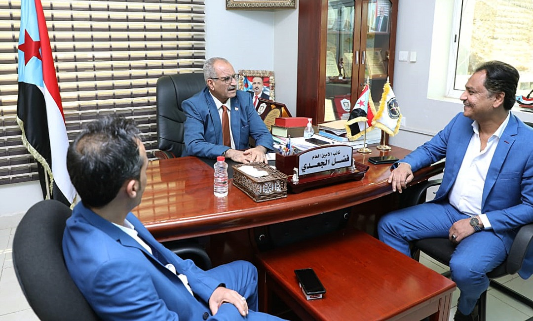 التقى الأستاذ فضل محمد الجعدي نائب الأمين العام بالأمانة العامة لهيئة رئاسة المجلس الانتقالي الجنوبي عضو هيئة الرئاسة، اليوم الثلاثاء، في مكتبه في مقر الأمانة العامة في العاصمة عدن بالأستاذ فادي حسن باعوم رئيس المكتب السياسي لمجلس الحراك الثوري.