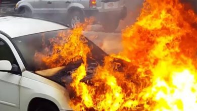رجل يحرق سيارته لتوريط زوجته ونجله ينقذها في قسم الشرطة