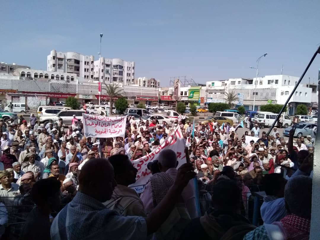و شارك في الوقفة الاحتجاجية منظمات و نقابات جنوبية التي جاءت بناء على دعوة كافة منتسبي الجيش و الأمن الجنوبي في محافظات الجنوبية ضد تعسف الحكومة الشرعية في مماطلة بصرف مرتباتهم.