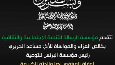 *رئيس مؤسسة البرنس للتوعية والتنمية يشكر كل من واساه في وفاة والدته*