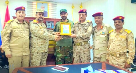 كرم قائد كتيبة النخبة مشاه مركز العند المقدم احمد محمد با مدحن اليوم بالعاصمة عدن اللواء احمد البصر سالم نائب رئيس هيئة الأركان العامة بوزارة الدفاع بشهادة شكر وتقدير نظير الجهود التي يبذلها في خدمة المؤسسة العسكرية و هيئاتها و دوائرها العامة إلى جانب وزير الدفاع الفريق الركن محسن الداعري .