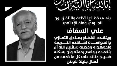 قطاع الإذاعة والتلفزيون الجنوبي ينعي رحيل الإعلامي علي السقاف