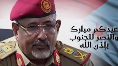 بمناسبة حلول عيد الفطر المبارك.. اللواء الركن/فرح سالمين البحسني يهنئ شعب الجنوب