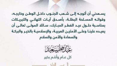 الرئيس الزُبيدي يهنئ شعب الجنوب بعيد الفطر المبارك، ماذا قال؟