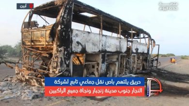 ابين.. تابع لشركة النجار.. باص نقل جماعي تلتهمه النيران جنوب مدينة زنجبار.. مامصير الركاب؟