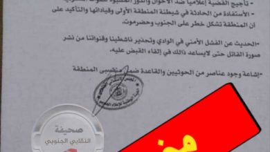 تحذير من وثيقة مضللة تتداولها جهات مشبوهة بهدف التغطية على جريمة سيئون